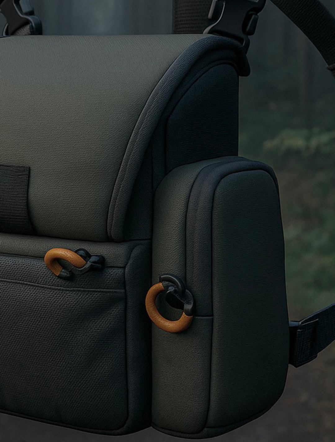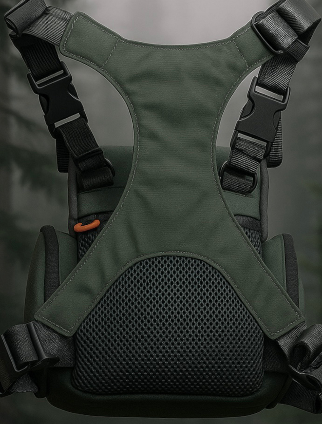 Compact bino harness built to keep optics dry, secure, and ready on the move.