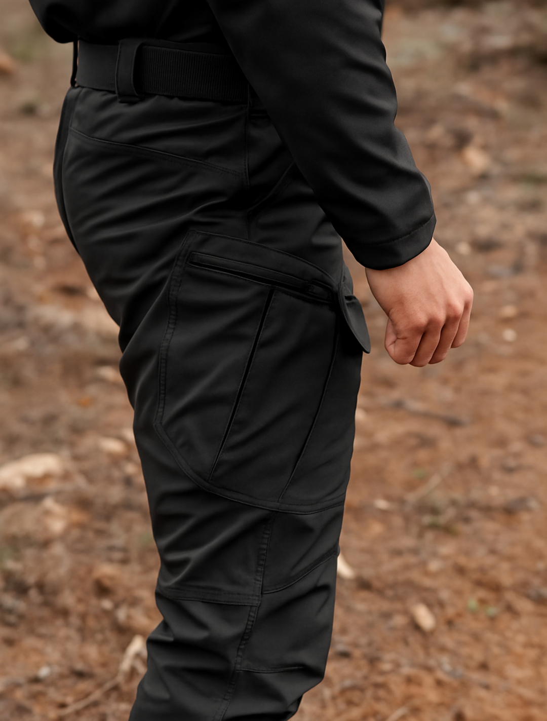 The flexible nylon-blend fabric adapts to every stride, climb, and crouch — no stiffness, no restrictions.