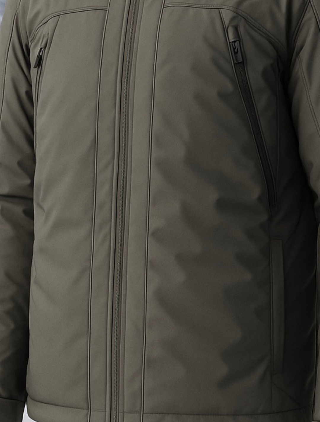 - Full-Zip Front: 2-way waterproof zipper with chin guard and storm flap